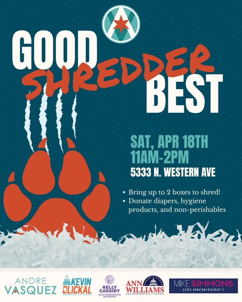 On Saturday, April 18th, we’re hosting a Bears-themed shred event at 5333 N. Western Avenue from 11:30am-2:00pm (or until trucks are full)!